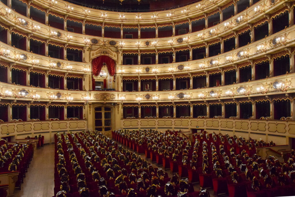L’iniziativa ha piacevolmente sorpreso il pubblico presente in sala anche il giorno successivo in “Niente Panico! con Paolo Hendel”. La sala grande del Teatro brillava grazie all’effetto scenografico del dolcissimo cadeau.